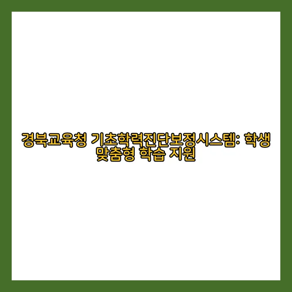 경북교육청의 기초학력진단보정시스템은 학생 개개인의 학습 필요를 충족시키는 맞춤형 교육을 제공하는 데 초점을 맞추고 있습니다. 이러한 종합적이고 체계적인 접근을 통해 학습 부진 문제를 효과적으로 해결하고, 학생들의 기초학력 향상에 기여하고 있습니다.