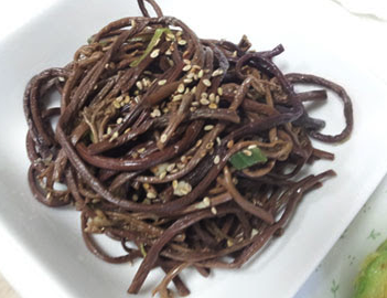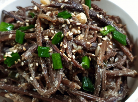 ⑤ 참기름을 두르고 섞어서 냉나물로 먹습니다.