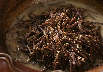 - 재료: 고사리 300g, 쇠고기 100g, 당근 반개, 밤고구마 반개, 간장 2큰술, 맛술 1큰술, 설탕 1작은술, 참기름, 깨소금