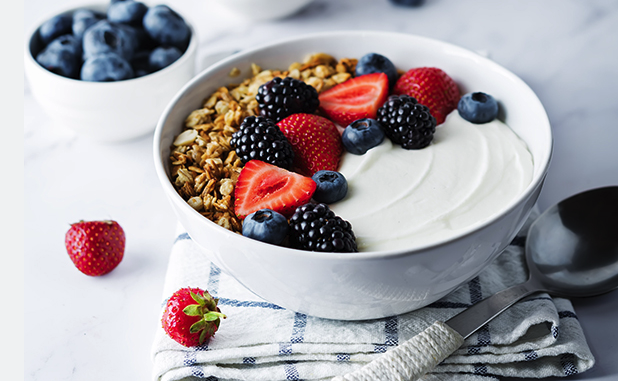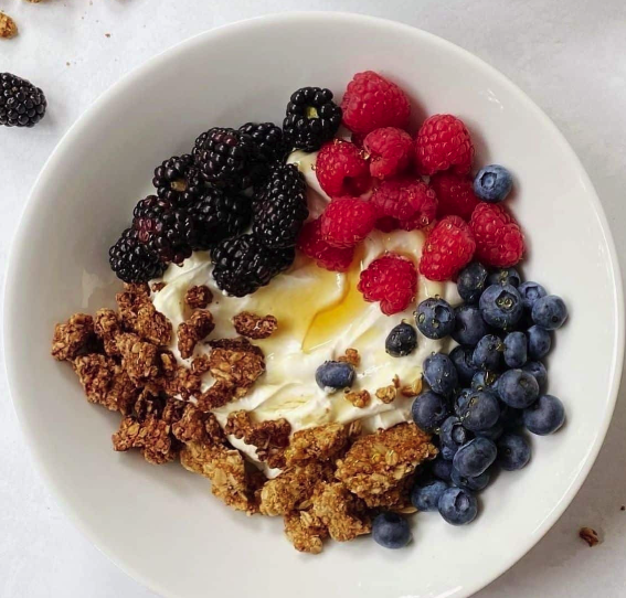 - 요거트 위에 베리류를 얹고 그 위에 그래놀라나 뮤즐리를 뿌립니다.