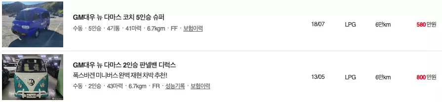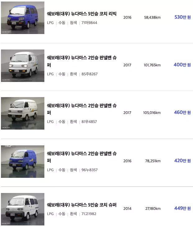 다마스 중고차 매물등록현황