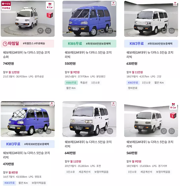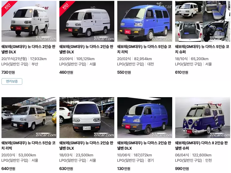 다마스 중고차 시세 확인해보겠습니다. 캠핑카, 소형화물이나 승합으로 나온 차종인데요. 서민들에게는 싼 가격 때문에 고마운 차량이죠. 캠핑카로도 이용할 수 있어 다목적으로 이용할 수 있는데요. 오늘 내용에는 2011년식부터 2021년 단종 될때까지 모든 모델별 중고시세를 확인해보겠습니다.