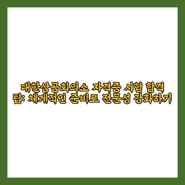 대한상공회의소 자격증 시험은 체계적이고 지속적인 준비가 핵심입니다. 철저한 학습 계획과 실전 경험 쌓기, 그리고 다양한 학습 자원 활용으로 전문성을 쌓아가세요. 이를 통해 성공적인 자격증 취득에 이르길 바랍니다!