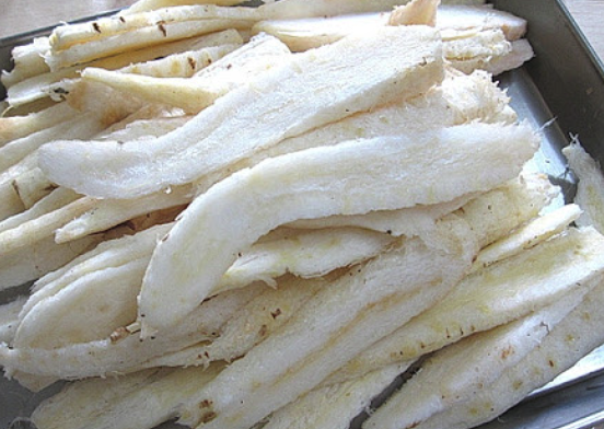 • 더덕을 껍질을 벗기고 물에 씻은 후 얇게 자릅니다.