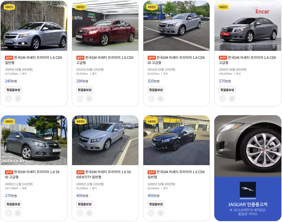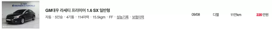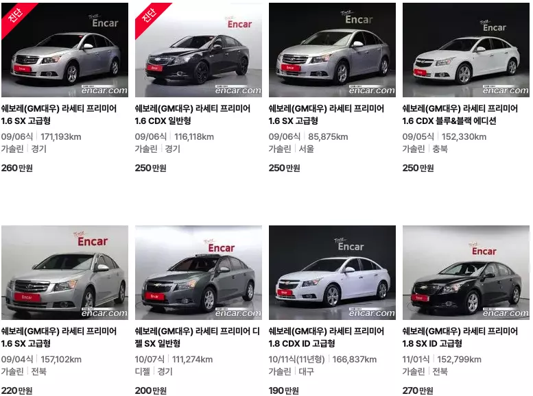 라세티 중고차 매물등록현황