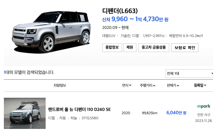 랜드로버 디펜더 오프로드 대명사라고 할 수 있죠. 남자라면, 거친 드라이빙을 좋아하는 사람이라면 누구나 꿈꾸는 자동차입니다. 각 모델 중고차 시세와 현재 중고사이트에 등록된 매물현황을 정리했습니다. 2020년 부터 2022, 2023년 까지 바로 확인해보세요.