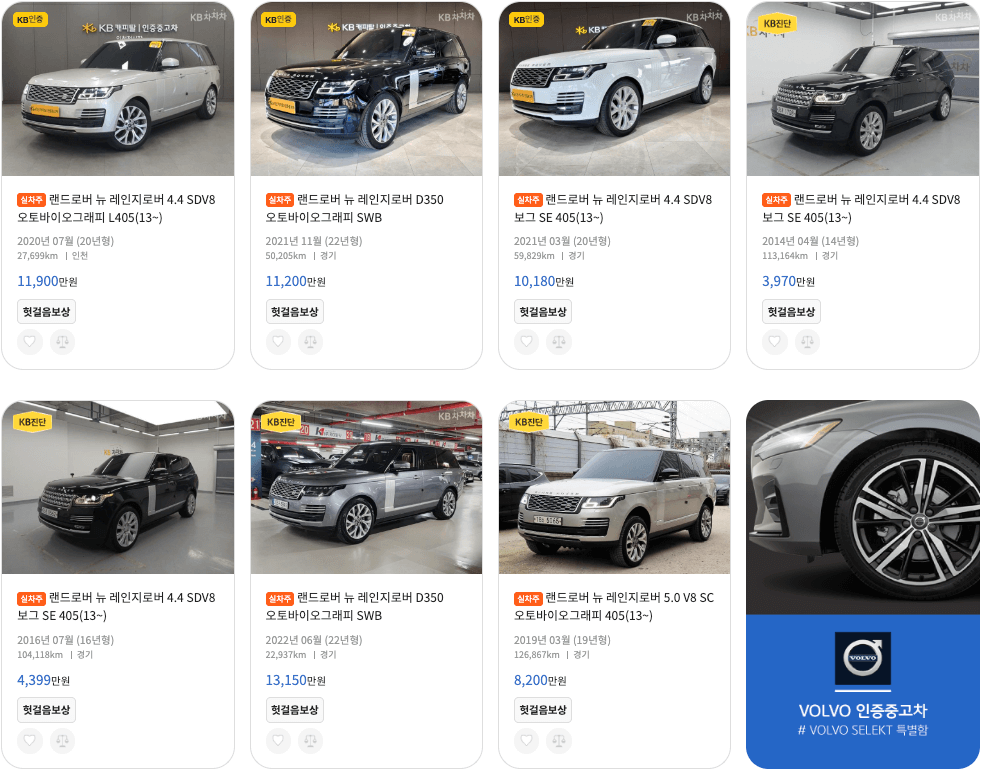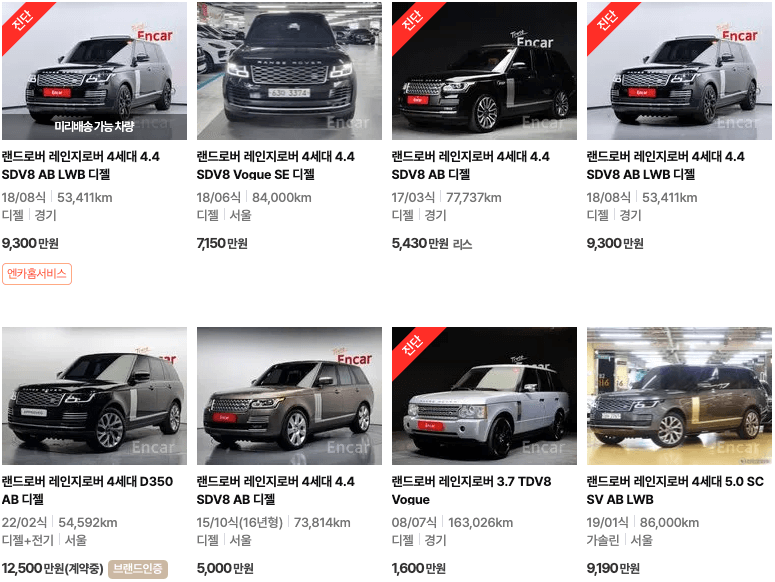 랜드로버 레인지로버 중고차 가격표 및 매물