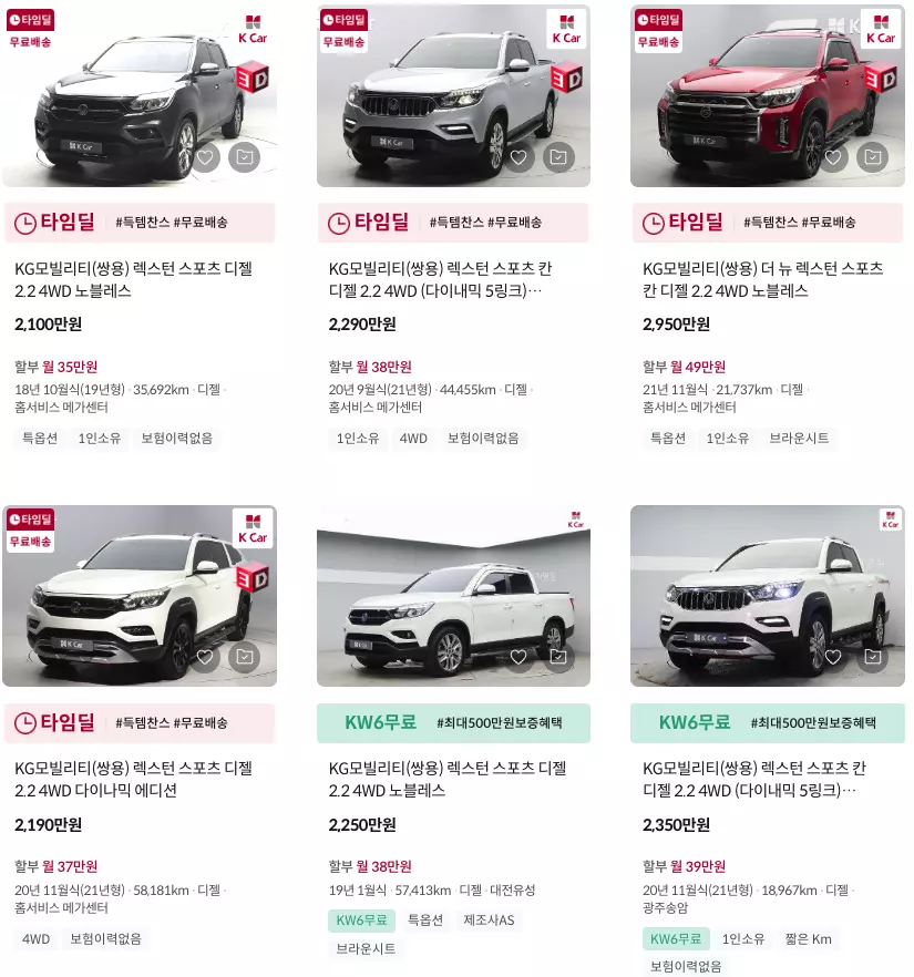렉스턴 스포츠는 쌍용에서 출발했던 차였는데요. 무쏘라는 차종을 기억하시는 분들이 많이 계실 거예요. 그 계보를 잇는 차종이죠. 특유의 묵직함이 매력이었는데요. 출발은 조금 답답할 수 있겠지만, 고속도로에서 탄력을 붙여 달리게 되면 안정감과 속도감을 함께 맛볼 수 있죠. 렉스턴 스포츠 중고차 시세와 종합적인 정보를 천천이 확인해보세요.