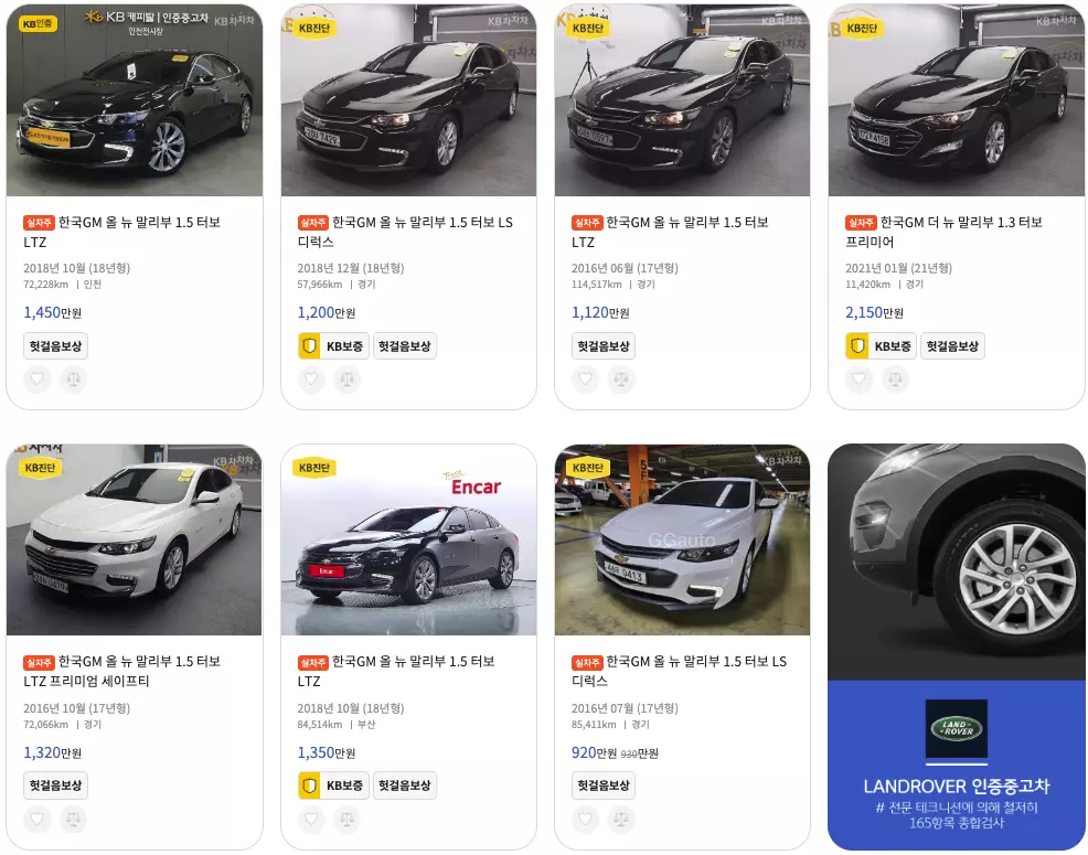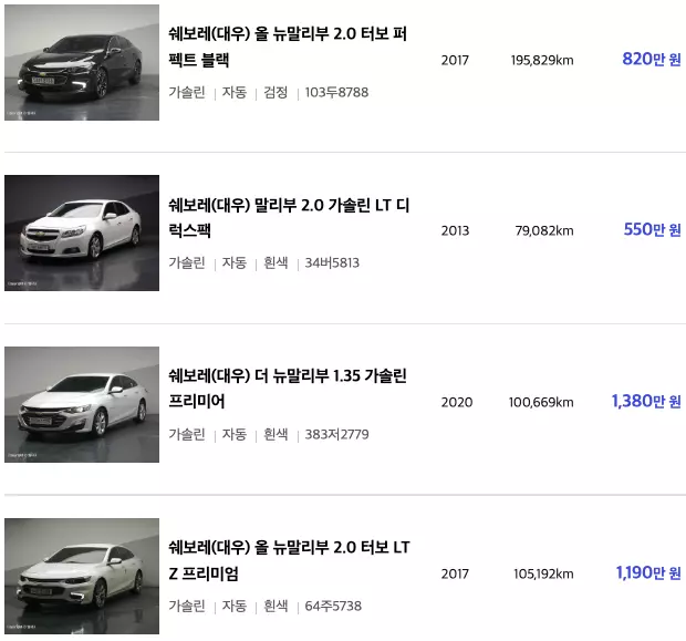 말리부 중고차 매물등록현황