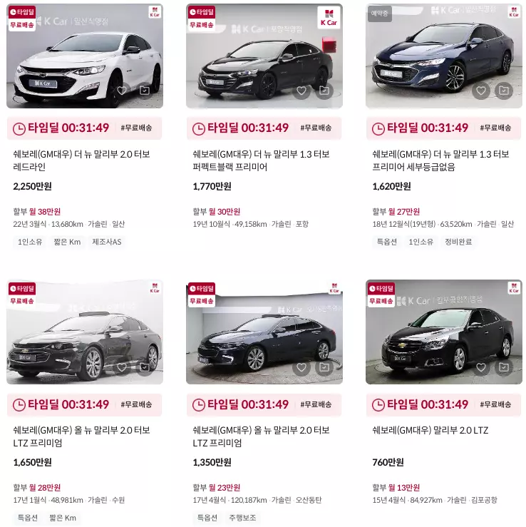 말리부 중고차 가격 K카 등록