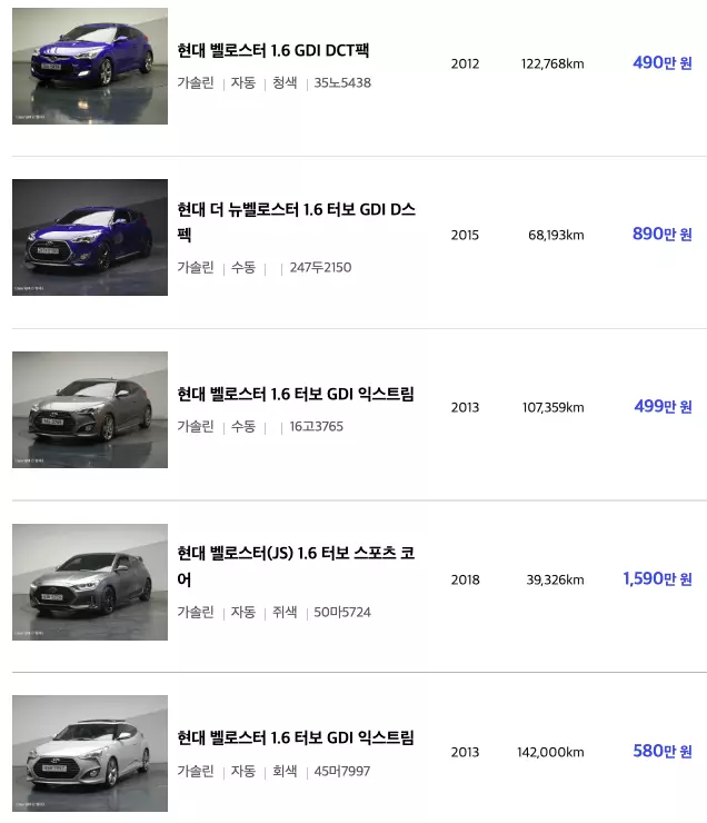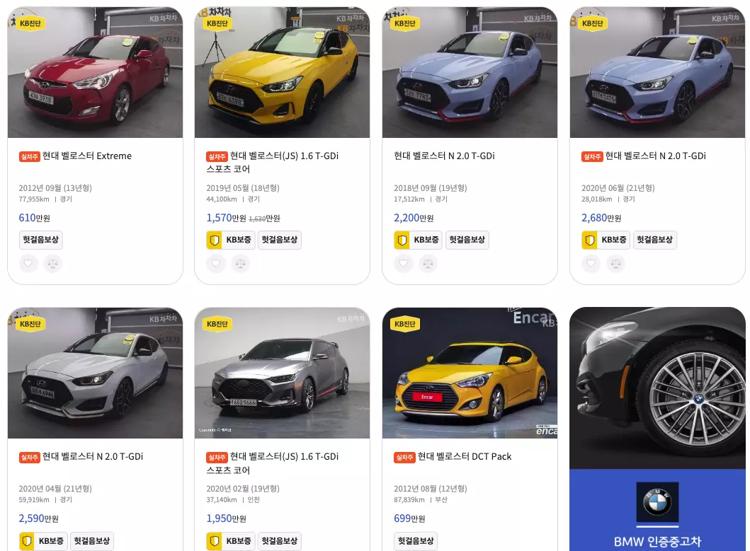 벨로스터 중고차 가격표 KB차차차 등록매물