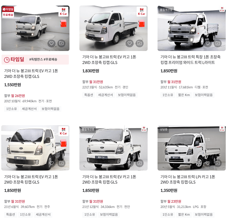 봉고3 중고차 가격과 시세를 정리해드릴께요. 전기차, lpg 모델이 대세를 이루고 있죠. 킹캡, 더블캡, 탑차 등 특장차까지 모든 종류를 아래에 시세표를 바로 확인할 수 있습니다. 2010년부터 2023년, 2024년 최신형까지 볼 수 있어요. 자영업자들의 생계수단이라 중고 시세는 매우 민감할 수 있어요. 시세 조사 정확히 보세요.