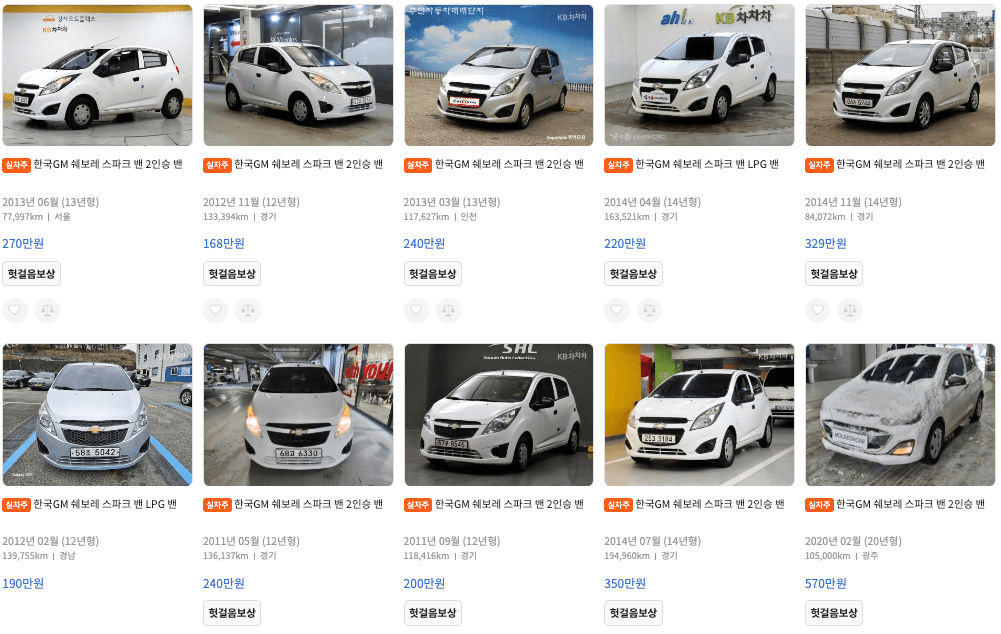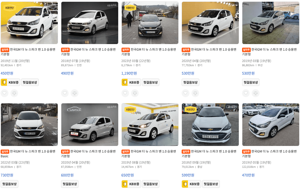 KB차차차 : 쉐보레 스파크 중고 매물
