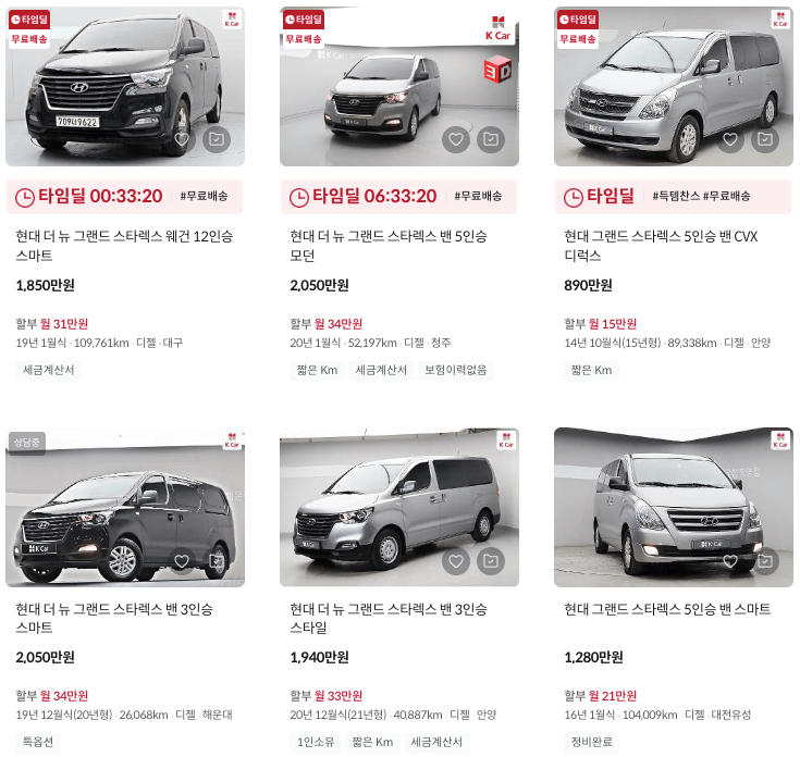 스타렉스 중고차 가격과 시세표 완전 정리했어요. 전체 모델 9인승 11인승 12인승, 3밴 5밴 표로 정리했어요. 스타렉스 캠핑카를 꾸미는 매니아들은 3밴으로 멋지게 변신 시킬 수 있지요. 구형 스타렉스부터 2024년형까지 볼 수 있겠네요.