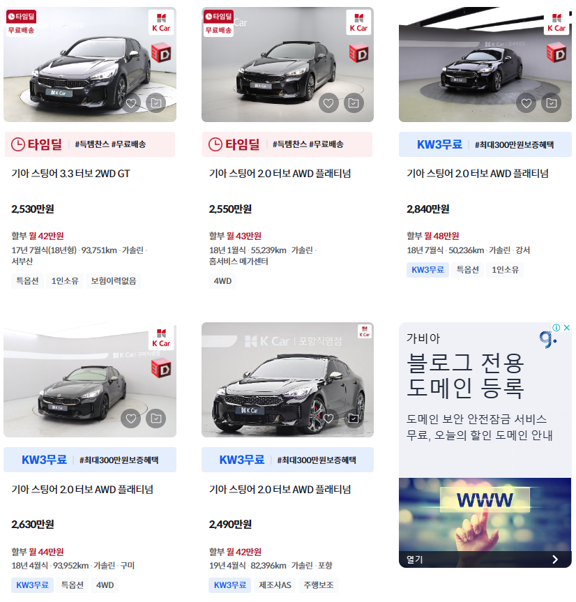 자 그럼 이제 기아 스팅어 중고차 시세부터 확인 한 후 중고차 매물까지 확인해보겠습니다.