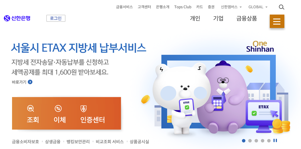 신한은행 기업인터넷뱅킹 홈페이지 방문하기