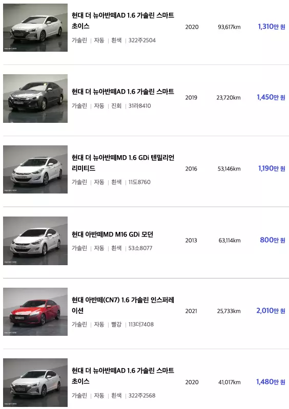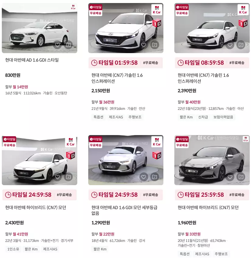 아반떼 하이브리드 중고차 가격 시세 cn7 2010~2023년 ad md 2024 (0) | 2023.11.16 |
