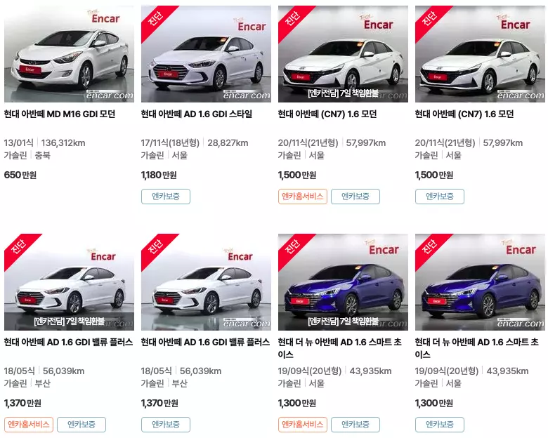 아반떼는 중고차종에서 가장 인기 많은 차종이죠. 지난 30여년동안 수많은 업그레이드를 거듭하면서도 계속 베스트가 된다는 것은 엄청난 매력이 있다는 거죠. 가장 최신 버전인 CN을 시작으로 AD, MD, HD, XD 모델이 활발하게 거래되고 있고요. 그 이전 차종도 간간히 볼 수 있긴해요. 모든 아반떼 차종 중고 시세와 가격표 바로 확인해보세요^^