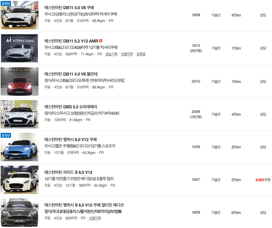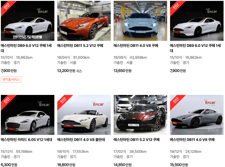 애스턴 마틴 중고차 가격 엔카 등록매물
