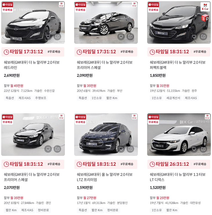 국산 중고차 시세표/▶쉐보레