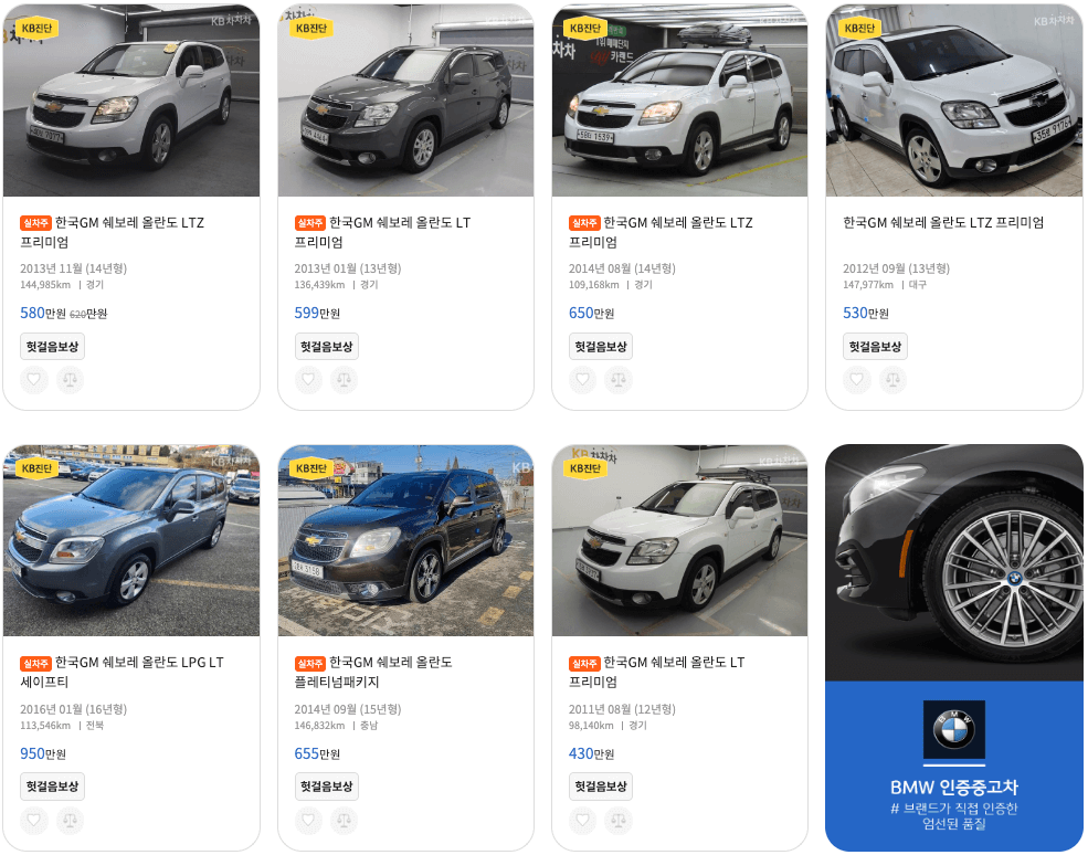 올란도 중고차 매물등록현황
