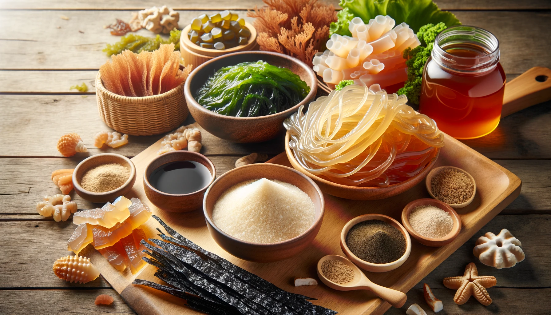 우뭇가사리는 한천의 원료로도 사용됩니다. 한천은 다양한 요리에 활용될 수 있는 천연 젤라틴 대체품입니다.