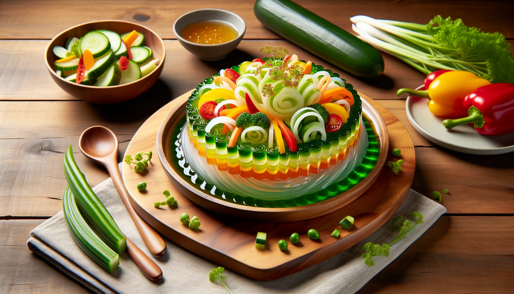 우뭇가사리 무침은 신선한 채소와 우뭇가사리를 함께 버무려 만든 요리로, 식감이 좋고 건강에도 이로운 요리입니다.
