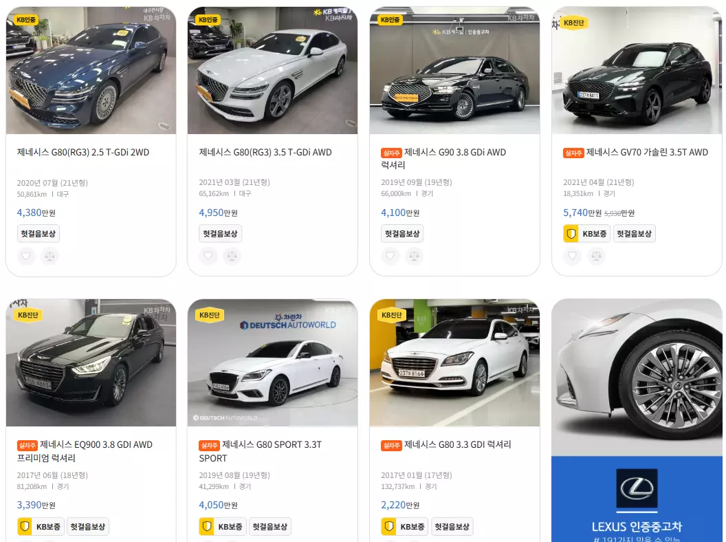 KB차차차 등록 제네시스 중고차
