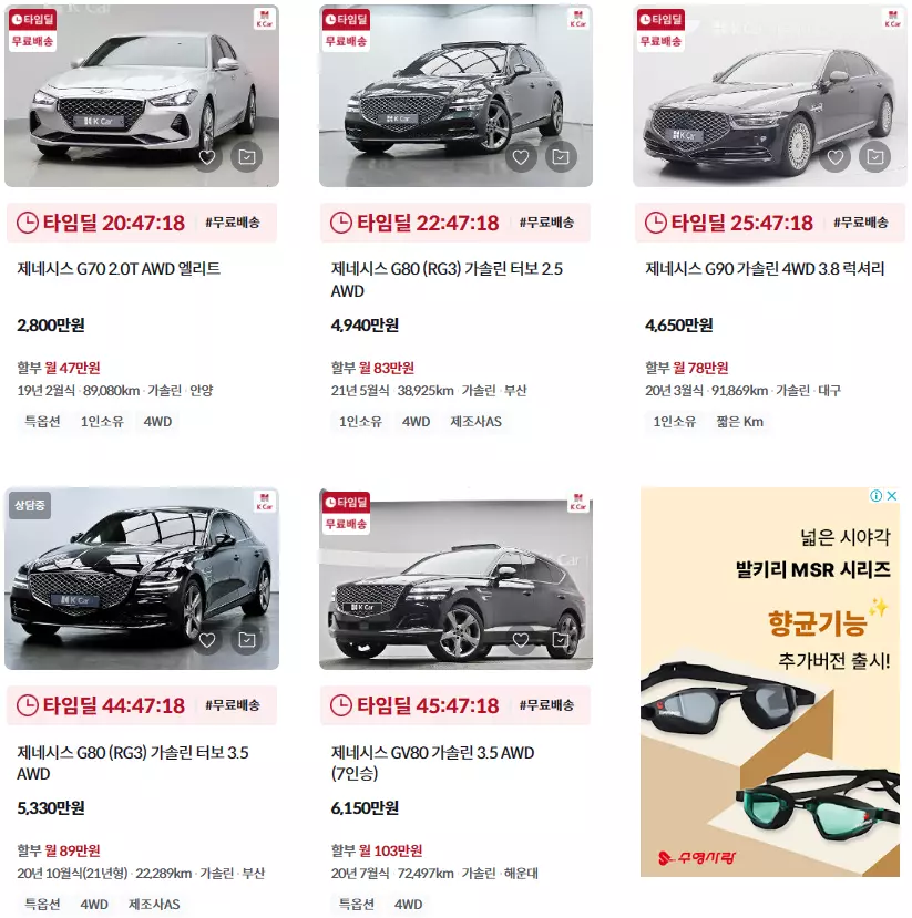 제네시스 중고차 K카 등록 가격표