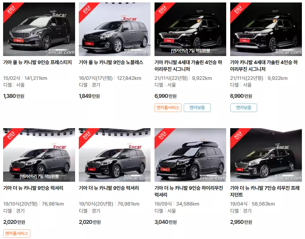 엔카 등록 | 카니발 중고 현황 및 가격표