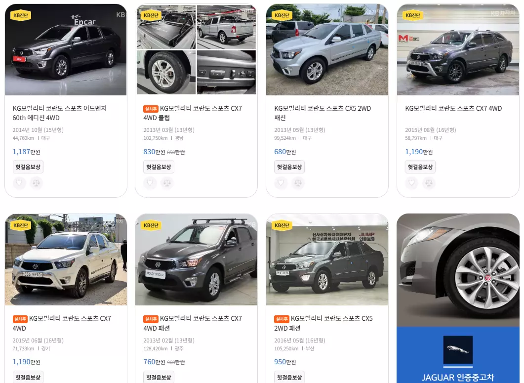 보배드림 | KG 모빌리티 코란도 스포츠 중고 가격표