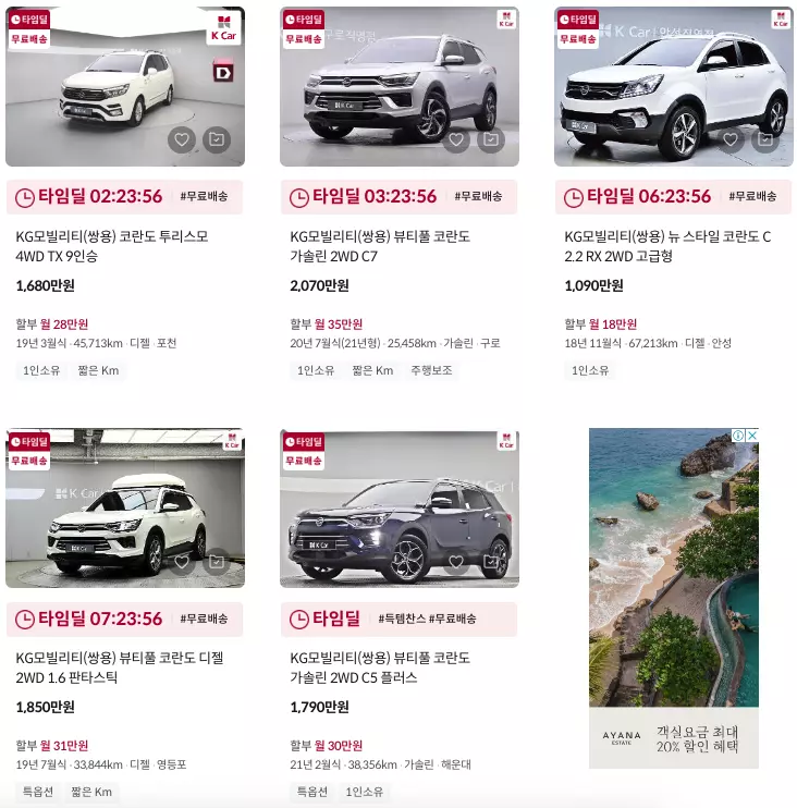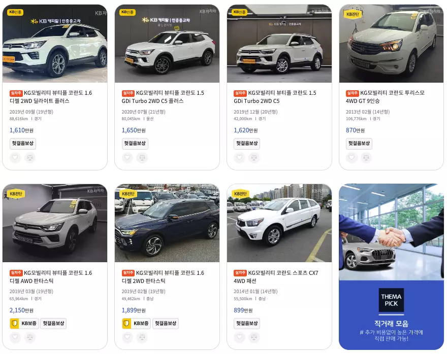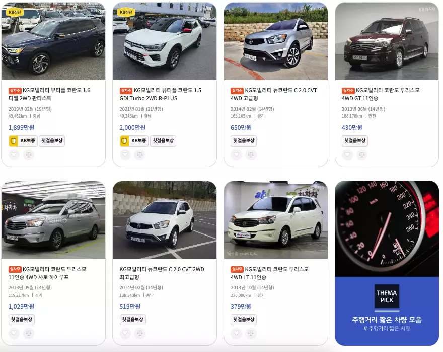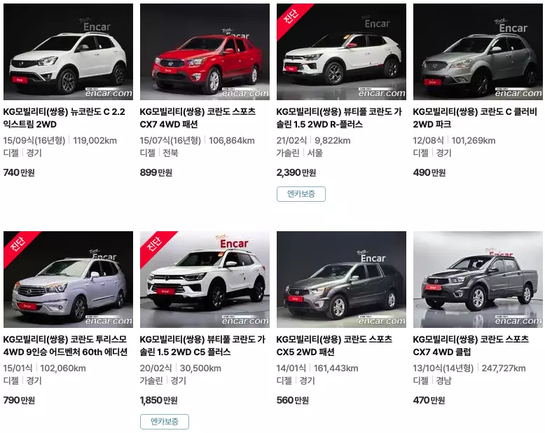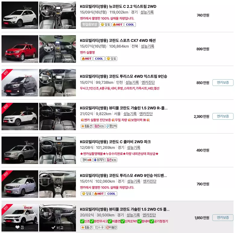 오늘은 코란도 뷰티풀, 이모션, 투리스모, C 모델 등 3대 중고 사이트 등록 매물 위주로 알려드려요.