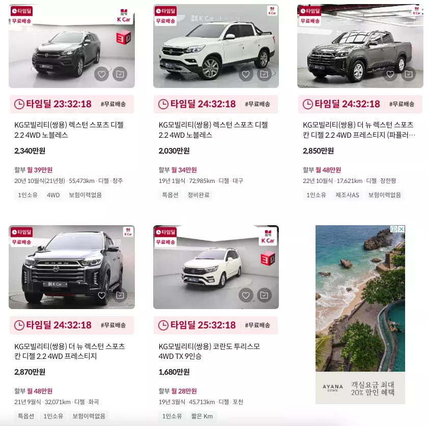 코란도C 이모션 포토 투리스모 중고 시세 (0) | 2023.11.16 |