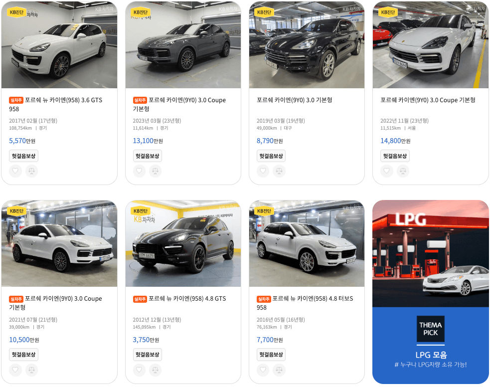 카이엔 중고차 가격 시세표 총정리. 포르쉐 카이엔은 포르쉐사의 준대형 SUV로, 다양한 모델과 엔진 옵션을 제공합니다. 카이엔은 뛰어난 주행 성능과 포르쉐의 전형적인 디자인을 갖추고 있으며, 가족을 위한 넉넉한 수납 공간을 제공합니다. 최신 모델에는 4리터 V8 바이터보 엔진을 장착한 카이엔 터보 GT가 포함되어 있으며, 이 모델은 659마력의 최고 출력을 자랑하며 높은 가속 성능을 보여줍니다.