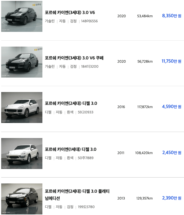 '수입 중고차 시세표 > ▶포르쉐' 카테고리의 다른 글