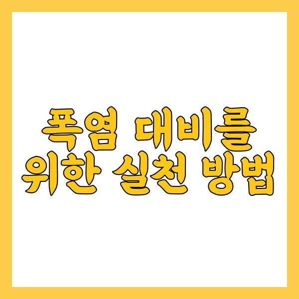 이와 같은 다양한 대비책을 실천하면 폭염으로 인한 건강 문제를 효과적으로 예방할 수 있습니다. 열사병, 열탈진 등의 증상이 나타나면 신속한 응급 처치가 필요하니 주의해야 합니다.