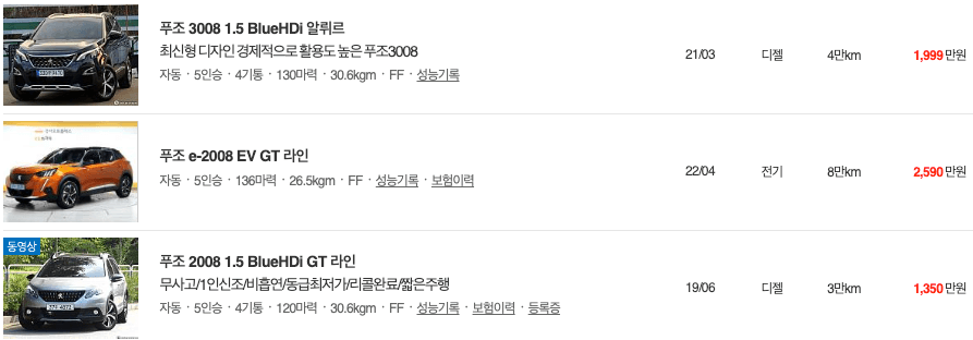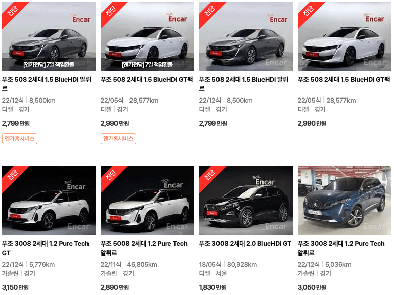 푸조 중고차 시세와 가격 총정리했어요. 각 모델별, 연식별 확인할 수 있어요.