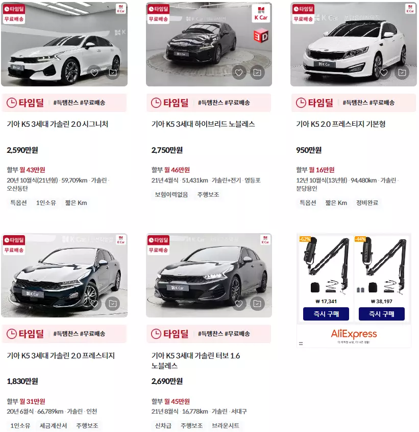 K5 중고차 K카 등록매물