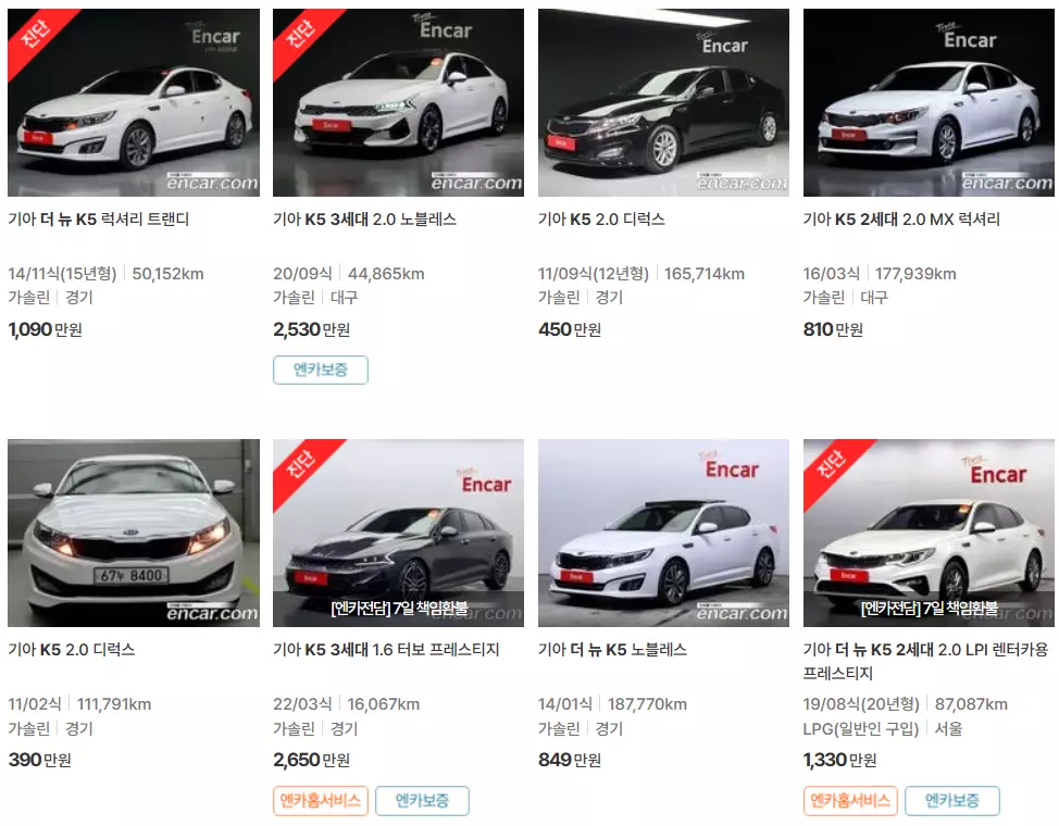 엔카 K5 중고차 가격