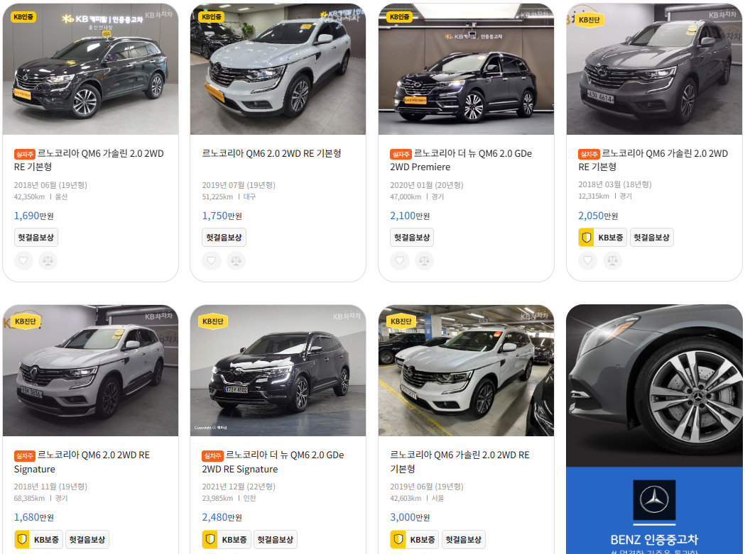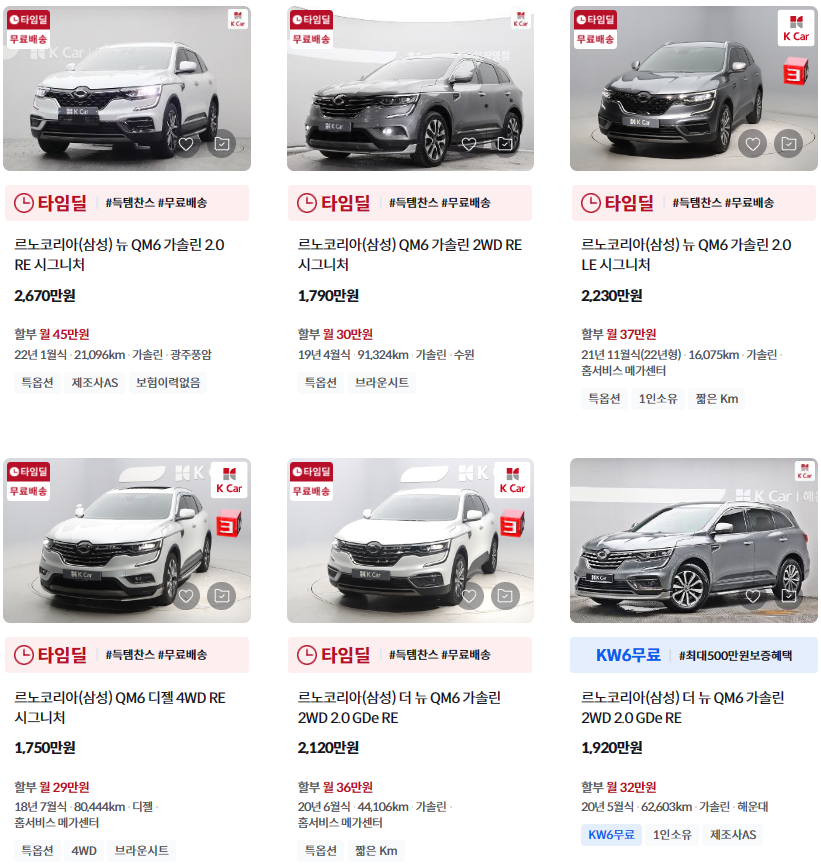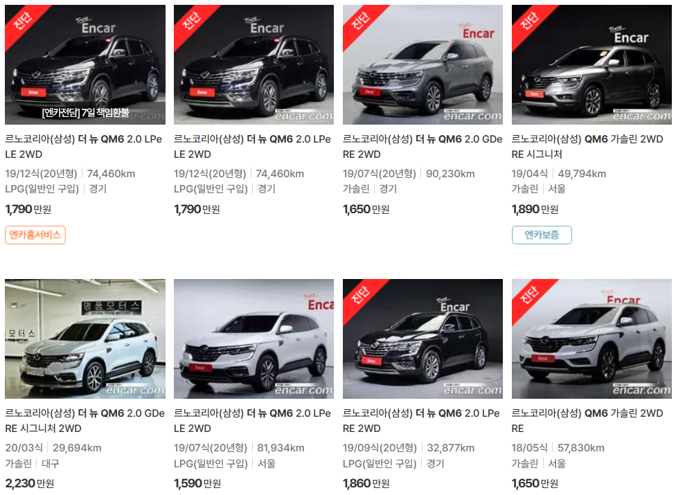 QM6 중고차 가격 및 시세에 대해 정리해봅니다. 르노 코리아 삼성자동차 QM6는 2016년 출시 당시 사전예약이 2만대를 돌파하는 기염을 보여주면서 중형SUV 시장에서 이슈를 이끌었던 차종입니다. 삼성 특유의 차별화된 디자인과 우수한 주행성능, 착한 가격 등 여러가지 장점을 가지고 있어 소비자들에게 크게 호응을 받았습니다. QM6 중고차 가격과 시세를 알아보도록 하겠습니다.
