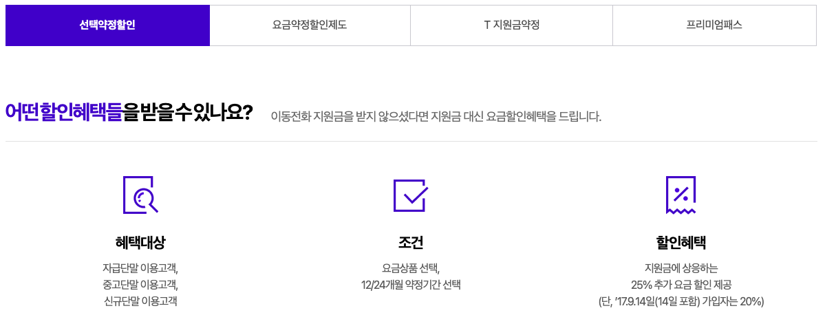 SKT의 선택약정할인제도는 가입자들에게 통신 요금의 25%를 할인받을 수 있는 혜택을 제공합니다. 신규 가입이나 기기 변경 시 기기값 할인을 받지 않은 사용자들이 주로 이용하는 이 제도는 약정 기간 동안 지속적인 할인 혜택을 누릴 수 있게 해줍니다.